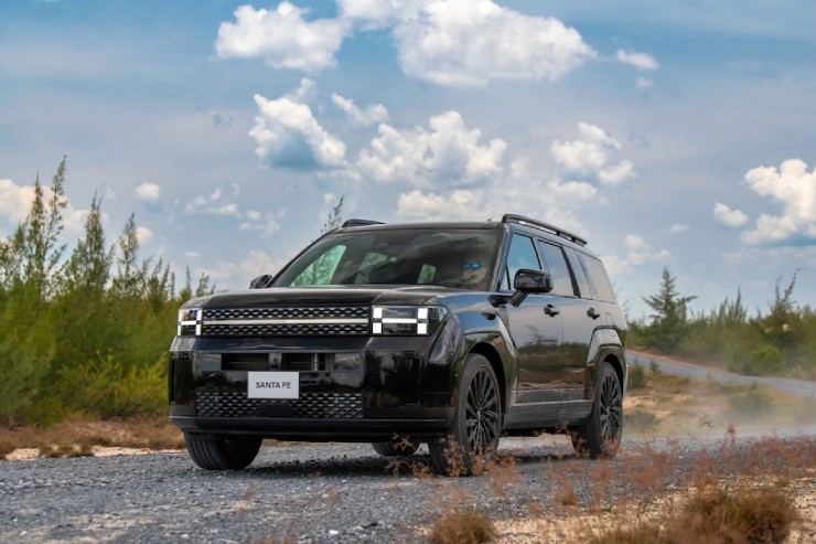 Trong khi đó, SantaFe 2025 lại tạo cảm giác “bước ra từ đường địa hình” với thân xe vuông cạnh, các mảng thiết kế cứng cáp, viền ốp lốp dày, mâm 21 inch cực đại và đèn chữ H đặc trưng đầy nhận diện.